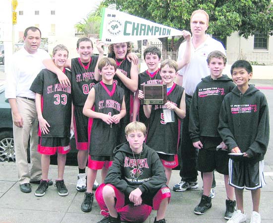 St. Perpetua's (St. P) 6th grade Panthers, coached by Rob O'Reilly and Ed Saribay, avenged last year's 5th grade double-over time championship game loss to Christ the King (Pleasant Hill) by beating essentially the same players in this year's final game, 42-40. "They're league rivals and they've had our number all season long," said Coach O'Reilly. "We needed our best performance of the season to beat them and we got it today. Coming into this game, I had a good feeling about our chances because each one of our players improved over the season, and things were really coming together for us in our playoff run."