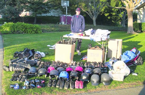 |  | | Campo varsity baseball player Michael Hoffman with equipment collected at MBA's Opening Day