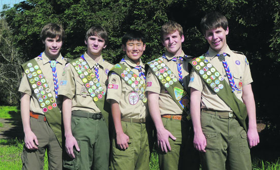 | | Published July 7th, 2010 | Troop 234's Newest Eagle Scouts | | Submitted by Brigid Wonder |  | | (L-R) James Creek, Bradley Silva, Stephen Iwata, Christopher Wonder, Cameron Adams Photo provided