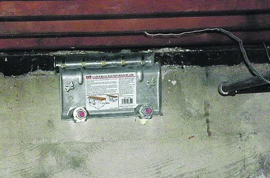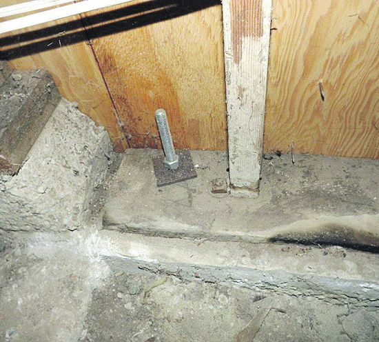 |                                                |                                 | Retrofit anchor bolt with plate washer (on left) shown next to original anchor bolt and small washer.