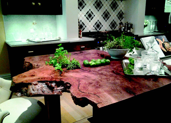 | Each year for the past 43 years, Kip's Bay has put on a Designer Show House. This year's kitchen featured a live edge burl wood counter. |