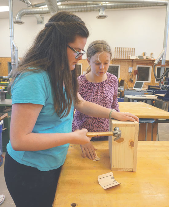 Lighthearted banter rises above the sweet smell of sawdust in the woodshop, along with sounds of scratching sandpaper, the tap-tap of hammers, the buzz of cordless drills and the occasional whine of a chop saw, but this is not your father's workshop. This is your father's daughter's... or granddaughter's workshop, where teacher Michele Murphy oversees an all-girls woodworking club new this year at Stanley Middle School.