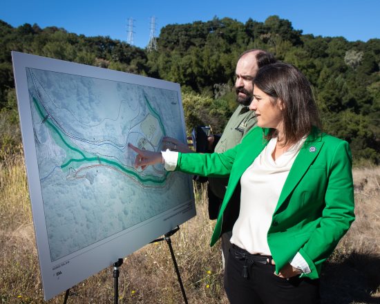 Working with the East Bay Regional Park District, Assemblymember Rebecca Bauer-Kahan has secured $4 million in state funding to daylight and restore an over 2,000-foot culverted section of creek in the upper San Leandro watershed. On Oct 21, Bauer-Kahan held a press conference at the park and handed over an oversized check to park district officials.