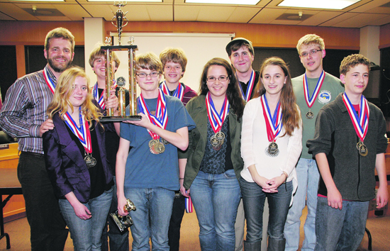 Camplindo High School's Academic Decathlon team competed in the California State Academic Decathlon Competition March 17-18 in Sacramento, representing Contra Costa County in this state-wide event. Six team members earned the following individual-achievement medals: Anastasia Fedorova (senior): Bronze in Music Laura Gustafson (junior): Bronze in Physics Jacob Phillips (senior): Gold in Speech Christoph Steefel (sophomore): Gold in Economics, Gold in Physics, Silver in Highest Overall Score in Division, Silver in math Evelyn Steefel (junior): Silver in Super Quiz Roman Wright (junior): Gold in Economics, Gold in Physics, Gold in Highest Overall Score by Team, Bronze in Essay
