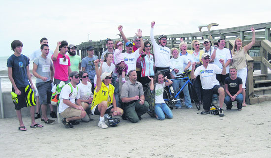 | Published November 26th, 2008 | 71-year old Biker Raises $78K Cross-Country Trek | By Andrea A. Firth |  | Bob Frick and friends celebrate his arrival, St. Augustine, Florida Photo provided