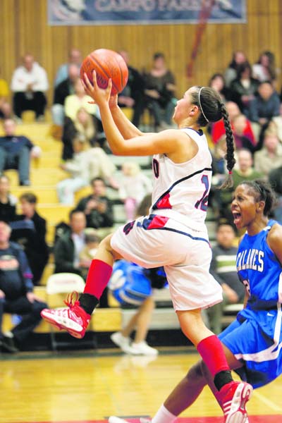 |  | Lady Cougar Rose Fruci takes it to the hoop Photo Doug Kohen