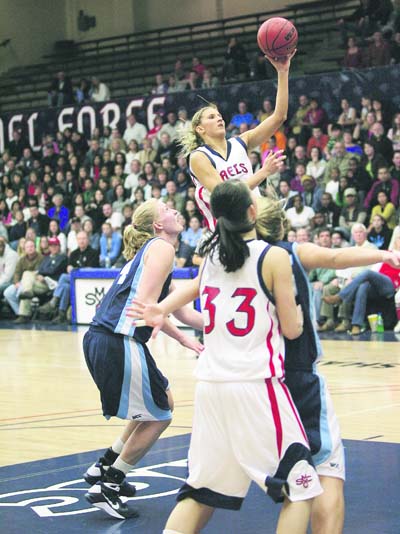 | Published February 4th, 2009 | Lady Gaels Give Pack the Pavilion Fans Double Overtime Show | By Mikaela Cowle |  | Lahde goes for the shot in Gaels' win against San Diego Photo Tod Fierner