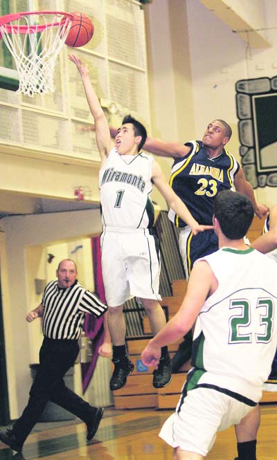| The Miramonte Matadors boys' basketball team took their five game DFAL winning streak on the road on Friday, January 23, facing Walnut Creek's Las Lomas Knights. The Knights focused on shutting down 6'9" Eric Obeysekere and kept him to 14 points. But all that attention on Obeysekere cleared space for Jared O'Leary who scored five 3-pointers and was 4-4 at the foul line. The Mats finished off the Knights, 70-56, upping their DFAL record to 5-0.
