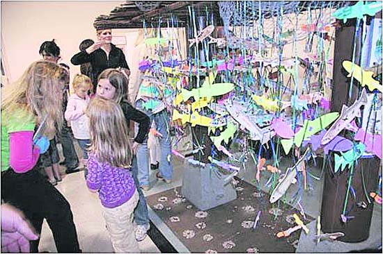 |  | Grace Dixon (L), LASF volunteer and Lafayette Elementary mom, speaks with children about the Life Cycle of Trout project she helped coordinate with first grade teachers. The large walk-around, walk-through project complete with river sound effects, drew large crowds at the school's Science Fair.