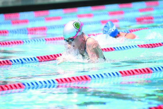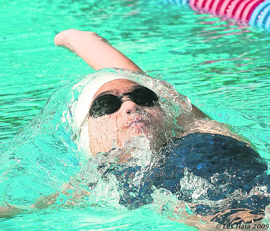 15 year old Valerie Su swimming backstroke Photo Les Hata
