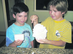 | | | Friends Iain Anderson and Jefferson Wake compare two soaps from experiment Photo Jennifer Wake