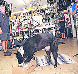 JOB: Greeter and friend of the kids at Hank and Frank Bicycles in Lafayette; been going to work with owner Frank Dryer for ten years.