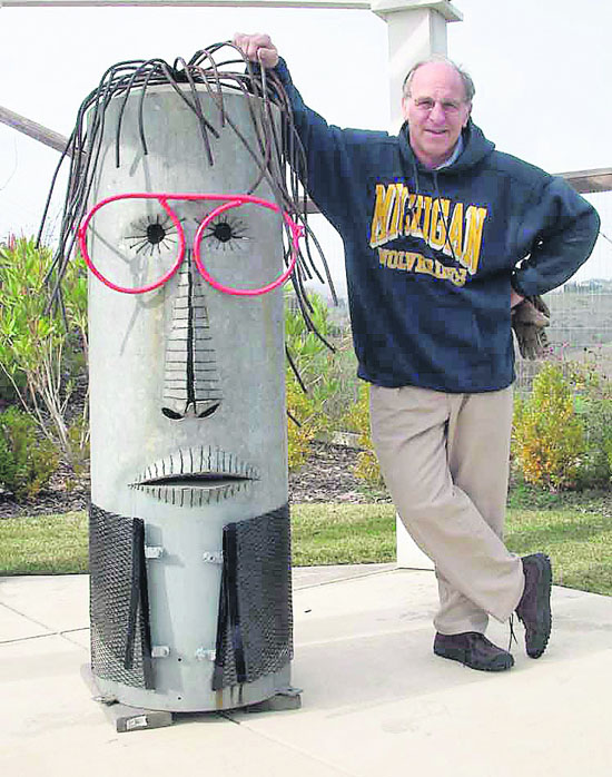 Sculptor Joe Bologna and one of his scrap-metal creations. Joe will exhibit his work with artist Kris Vagner at Studio H (3405 Moraga Blvd. in Lafayette) during the Lamorinda Arts Alliance Open Studio Tour Photo provided