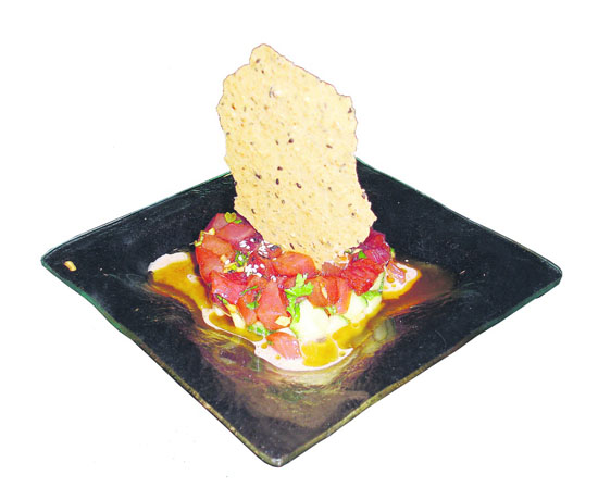 Place a 4-inch ring mold in the center of each serving plate. First spoon the cucumbers into the ring mold, making an even layer on the bottom. Next place the tuna on top of the cucumbers. Us the back of the spoon to pack the tuna tightly into the ring mold. Insert a piece of sesame cracker into the ring mold, then carefully remove the ring mold from the plate and serve. (Note: Since I don't have 4-inch ring molds, when I served the dish to my dinner guests, I used individual glass bowls, so the layering effect was visible and this worked very well. Metro originally served this dish in martini stems, which would be a very nice touch for the home cook, too!)