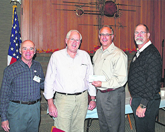 Demonstrating their ongoing commitment to Moraga's schools, the Kiwanis Club of Moraga Valley recently made its annual donation to the Moraga Education Foundation. (L to R): Kiwanis President Tim Freeman, Kiwanis Donations Chair Bob Reynolds, MEF Board Member Eric Andresen, and MSD Superintendent Rick Schafer.