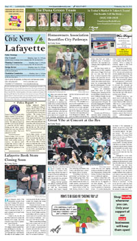 Page A 2 - A 3 read online: Lafayette Police Blotter read online: Homeowners Association Beautifies City Pathways read online: Great Vibe at Concert at the Res read online: Lafayette Book Store Closing Soon
