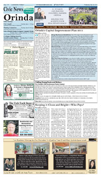 Page A 6 - A 7 read online: Orinda Police Blotter read online: Orinda’s Capital Improvement Plan 2011 read online: Calling Young Poets and Writers read online: Keeping it Clean and Bright-Who Pays?