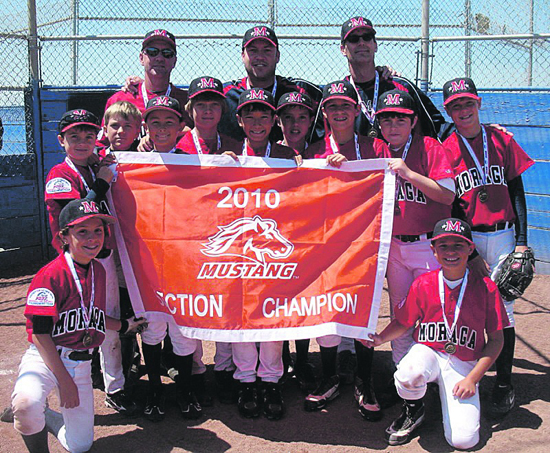 | | | | | | Moraga's 10-and-under, Mustang League all-star team (3-0) rolled to the section championship Sunday, recording a 15-4 victory over Brentwood (3-2) in the title game at Kerry Hills Field in San Pablo.