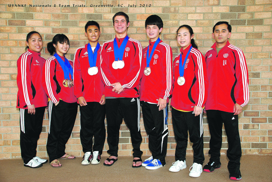 | The USA-National Karate Federation held its 2010 National Championships & Team Trials at the Greenville Bi-Lo Center in South Carolina on July 10-13th. This event also determines the berths for both the Junior and Senior USA Teams. Six competitors from the Northern California Karate-do (NCK) dojo in Walnut Creek competed at this elite event, garnering a total of two gold, five silver, and five bronze medals. Three of the NCK athletes are from Moraga: Chris Wellbrook, Asenath Yeung and Joseph Tsuboi. Wellbrook captured silver in the competitive Boys 16 year-old Advanced Open Kumite division and a bronze in the Advanced Open Kata division. Yeung went all the way to the finals round in the Girls 15 year-old Advanced Open Kata division, and won a silver medal. Tsuboi came back on recharge to earn a bronze medal in the Boys 14 year old Advanced Open Kata division.