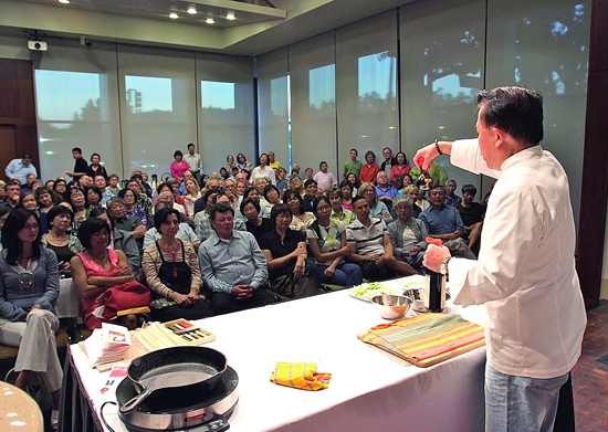 Photo courtesy Stephanie L. Jan |             | A standing-room only crowd greeted energetic celebrity chef Martin Yan at a sold out event at the Lafayette Library and Learning Center for a cooking demonstration, tasting and advice. Yan has accumulated a food related empire that includes three restaurants, Yan Can Cook - the iconic Asian cooking show, recipe books and kitchen knives that bear his name, a consulting business, and "gourmet adventure" Asian culinary tours.