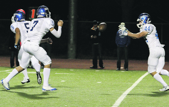 | Published October 13th, 2010 | Local Football Rivalries Play Out | By Alex Kozela |  | Acalanes' senior quarterback Mike Leamy (#7) hands the ball to junior running back Joe Dreyer for a touchdown run against Campolindo last Friday. Photo Pam Alsterlind