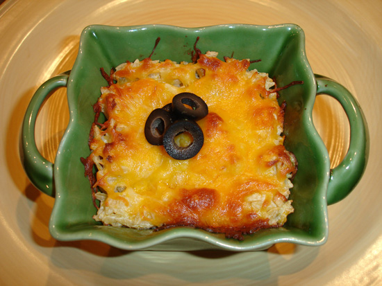 It can be made with brown or brown/wild rice, too, for those who prefer grains to pasta, but it is just a little more dense and slightly less puffy.