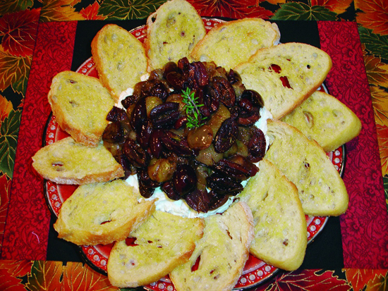 | Published December 8th, 2010 | A Grape Walked into an Olive Bar... | By Susie Iventosch |  | Grape-Olive Compote on 3-cheese spread. Photo Susie Iventosch