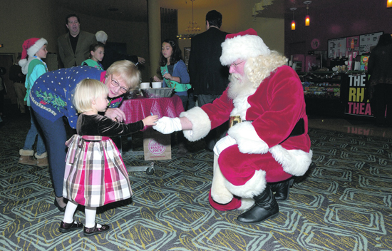 | On December 4, about 300 people gathered at The New Rheem Theatre for a screening of "Miracle on 34th Street," preceded by a reception featuring Santa Claus himself. The event was supported by Charles Schwab. Girls Scout Troop 30550 gathered toys for the Martinez-based Shelter Inc. and set craft tables for children. Meredith Clark, harpist from the San Francisco Symphony, played during the reception, and hors d'eouvres were served.