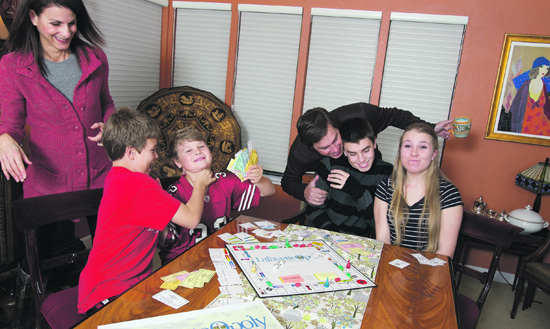 | Published December 22nd, 2010 | The Science of Happiness | By Lou Fancher |  | Practicing happiness: The O'Donnell family - Michael, Kathryn, Brendan (15), Julian (11), Audrey (14) and Mikey (8) - clowns around while enjoying a rousing game of LafayetteOpoly (just released by Lafayette Partners in Education - see ad page L3). Photo Doug Kohen