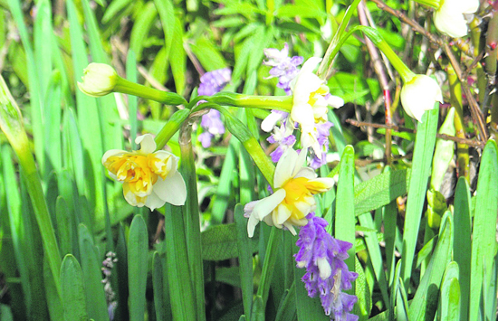 |  | | Narcissus mingled with Russian Sage brighten the winter landscape with beauty and perfume.