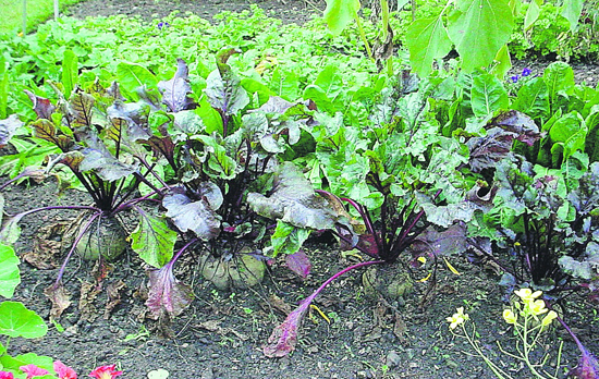 |  | | Beets ready to harvest along with winter greens.
