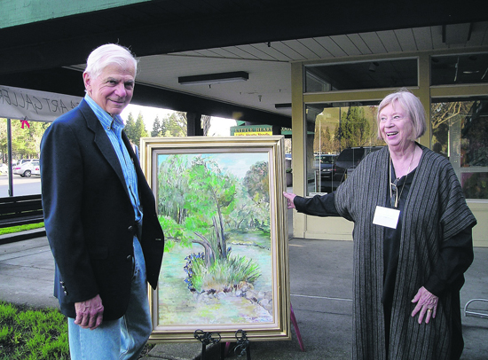 Ehrenhaft took up watercolors in 1996 after retiring from teaching English on the East Coast. His display of local landmarks, including the Lafayette-Moraga Trail, St. Mary's College, Theater Square, and Mt. Diablo drew high praise from Indian Valley Elementary school art teacher Heloise Levy. Levy was drawn to Ehrenhaft's mixed use of dry and wet brush techniques, and was at the open house to make a purchase.