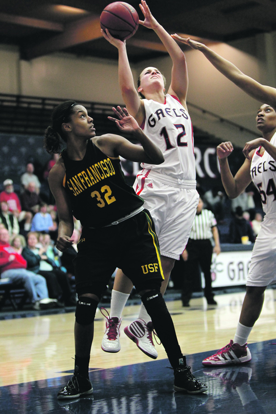 Saint Mary's continued their winning ways, again fighting back from a first half deficit on Saturday, February 12, against USF. The Gaels found themselves down 30-33 heading into the locker room at half time. Again, Smith led the comeback, sparking a 15-6 run with a big three pointer with 12 minutes left to play. Davis notched 14 points and sophomore guard Kate Gaze had 13 points.