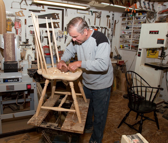 "I like to keep it as authentic as possible. All of the chairs were built the original way using the original tools," says Lucido. When unable to find a domestic source for an English travisher, a convex woodcarving tool used for shaping the chair's seat, Lucido made one himself. He smiles when pointing out the exception - he admits freely to using an electric-powered lathe versus the pedal-powered lathe employed in the early days.