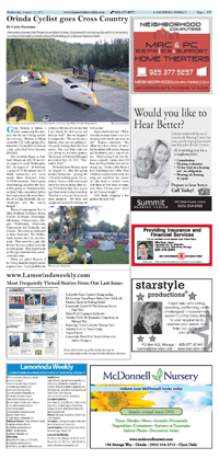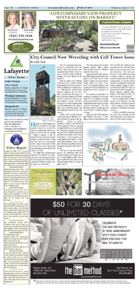 Page A 2 - A 3 Lafayette Police Blotter City Council Now Wrestling with Cell Tower Issue Sleepover Party at the Library Bike Pathway Plans Keep Rolling Along