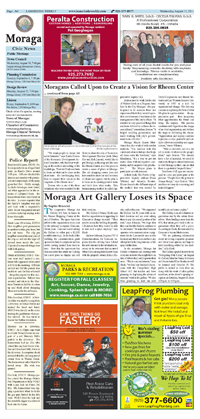 Page A 4 - A 5 Moragans Called Upon to Create a Vision for Rheem Center Moraga Police Blotter Moraga Art Gallery Loses its Space Moraga Roads at Risk Planning Director Lori Salamack Leaves Moraga