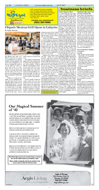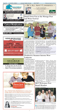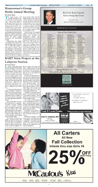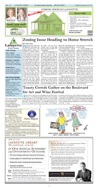Page A 2 - A 3 Lafayette Police Blotter Zoning Issue Heading to Home Stretch Toasty Crowds Gather on the Boulevard for Art and Wine Festival Homeowner's Group Holds Annual Meeting BART Solar Project at the Lafayette Station