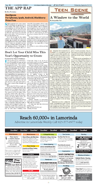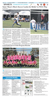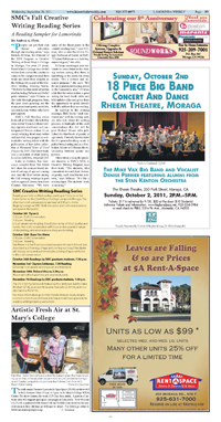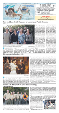 Page B2 - B3 New in Class: Staff Changes in Lamorinda Public Schools Picasso at the Lapin Agile Cal-ESAR: They've Got your Back(country) SMC's Fall Creative Writing Reading Series A Reading Sampler for Lamorinda Artistic Fresh Air at St. Mary's College