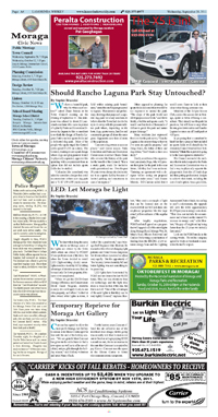 Page A 4 - A 5 Moraga Police Blotter Should Rancho Laguna Park Stay Untouched? LED: Let Moraga be Light Temporary Reprieve for Moraga Art Gallery RECON on Roads