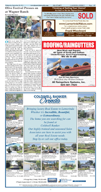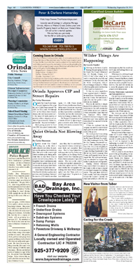 Page A 6 - A 7 Orinda Police Blotter Coming Soon in Orinda Orinda Approves CIP and Street Repairs Quiet Orinda Not Blowing Away Wilder Things Are Happening New Visitor from Tabor Caring for the Creek Olive Festival Presses on at Wagner Ranch