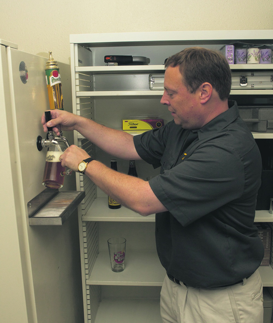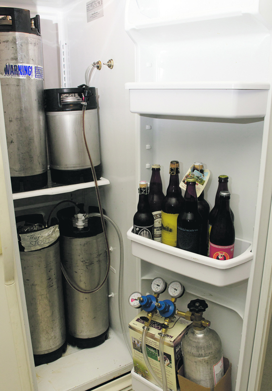 | | Troy Fedderesen helps himself to a refreshing beer from his customized garage