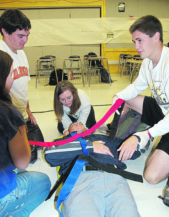 |  | | Students applied a backboard and C collar to a simulated victim who was
