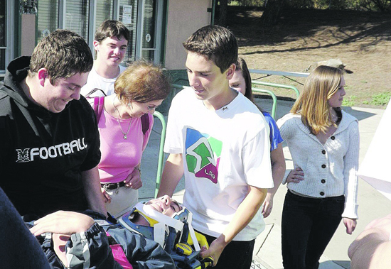Three students had mock injuries that added to the realism. Senior Nick Read suffered a broken neck and was strapped to a head board. Madison Gibson supposedly broke her ankle during the earthquake and Danielle Meyer was cut by glass going to Gibson's assistance. Fortunately, those students were "injured" at Miramonte High School, where a portion of John Grigsby's Sports Medicine students acted as a medical triage team. Grigsby says his students learn CPR and are first aid certified.