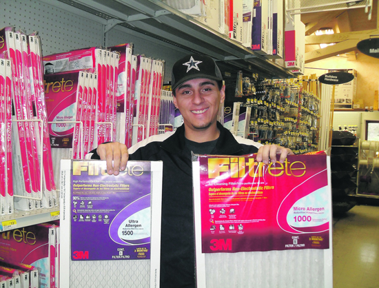 | | Published December 21st, 2011 | Preparing Your Home for Winter Weather | | By Sophie Braccini, Cathy Dausman and Cathy Tyson |  | | Sales Associate Alex Villa with furnace filters in Moraga Hardware. Photo C. Tyson