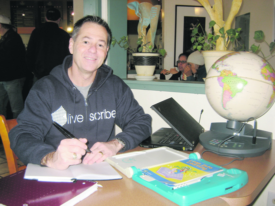 | | Jim Margraff with an Odyssey interactive globe and a Smartpen