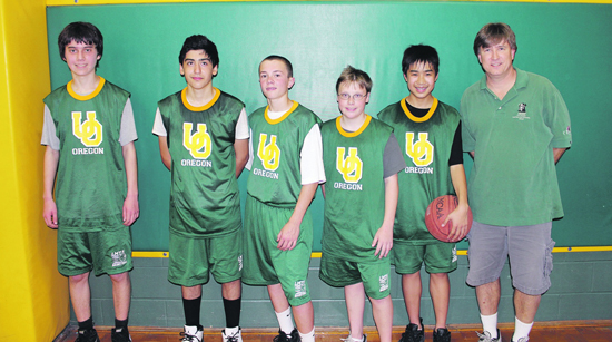 From left: Connor Virostek, Amir Alickbari, Harley McKee, Devin Mourrain, Dylan Siv, Coach Garry Grotke. Not shown: Gabriel Grotke, Payson Newman
