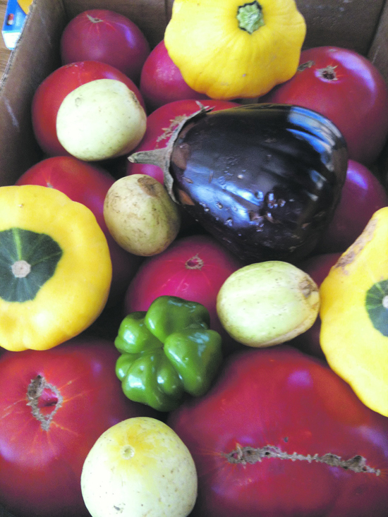 Final harvest of squash, cucumbers, eggplant, peppers, and tomatoes-plenty for a fall festivity.