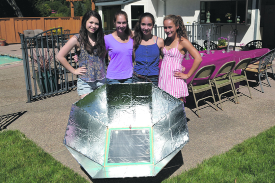 Four members of Moraga Girl Scout Troop 33206 recently completed a 50-hour service project, earning the Silver Award, the second highest award a Girl Scout can earn. They made five complete solar ovens that will help families in Afghanistan cook their food without the use of wood, which is expensive and produces smoke that can harm their health and the environment. The Solar Cookers can heat up to 350° F and can cook just about anything that can be made in a gas or electric oven. With the help of Trust in Education, a Lafayette-based organization, the cookers will be shipped and distributed to families in need.