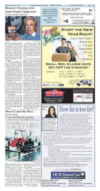 Page B2 - B3 "I Do Not Like Going to Walnut Creek!" Lamorindans Share Their Concerns and Interests for 2013 When Elder Parents Resist Your Suggestions Historic Evening with Anne Frank's Stepsister Shun Li and the Poet