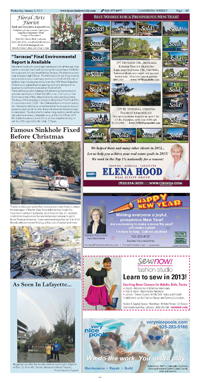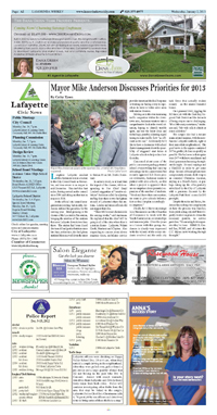 Page A 2 - A 3 Lafayette Police Blotter Mayor Mike Anderson Discusses Priorities for 2013 "Terraces" Final Environmental Report is Available Famous Sinkhole Fixed Before Christmas As Seen In Lafayette